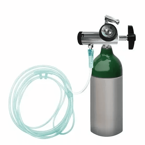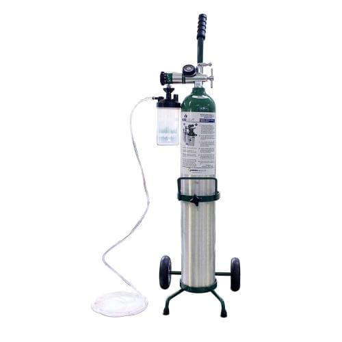 Proporciona un aumento de oxigenación a través del oxigeno puro inhalado. Presentacion de 420 lts, regulador, humidificador, cánula y bolsa de lona. Dura en promedio 1.40hrs.