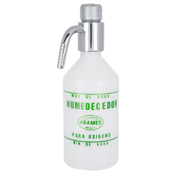 Humedece el oxigeno para que no sea seco al inhalarlo el paciente.